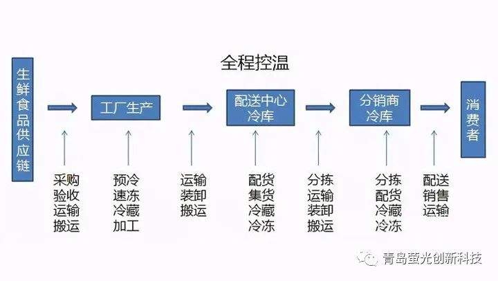 冷鏈系統(tǒng)主要包括冷鏈加工、冷鏈儲藏、冷鏈運輸與配送再到冷鏈銷售。冷鏈物流相對于其他物流存在著投資大、運營成本高、技術含量高、監(jiān)控困難且商品全程溫度控制等特點。